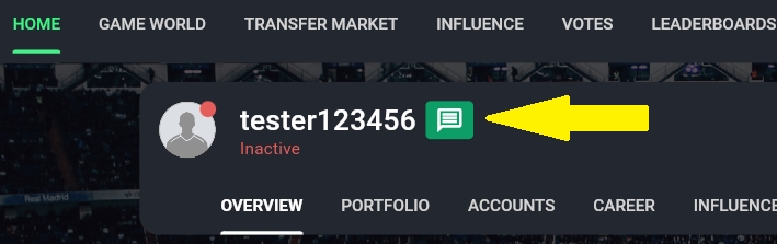 Jika Anda mengirim pesan kepada pengguna yang belum mendaftar untuk obrolan, Anda akan menerima tanda peringatan di samping pesan Anda. Ini berarti pesan Anda tidak dapat terkirim dan bahkan jika pengguna mendaftar untuk obrolan di lain waktu, mereka tidak akan menerima pesan Anda. Jadi pastikan untuk mendaftar untuk obrolan - Soccerverse dimaksudkan sebagai permainan sosial.