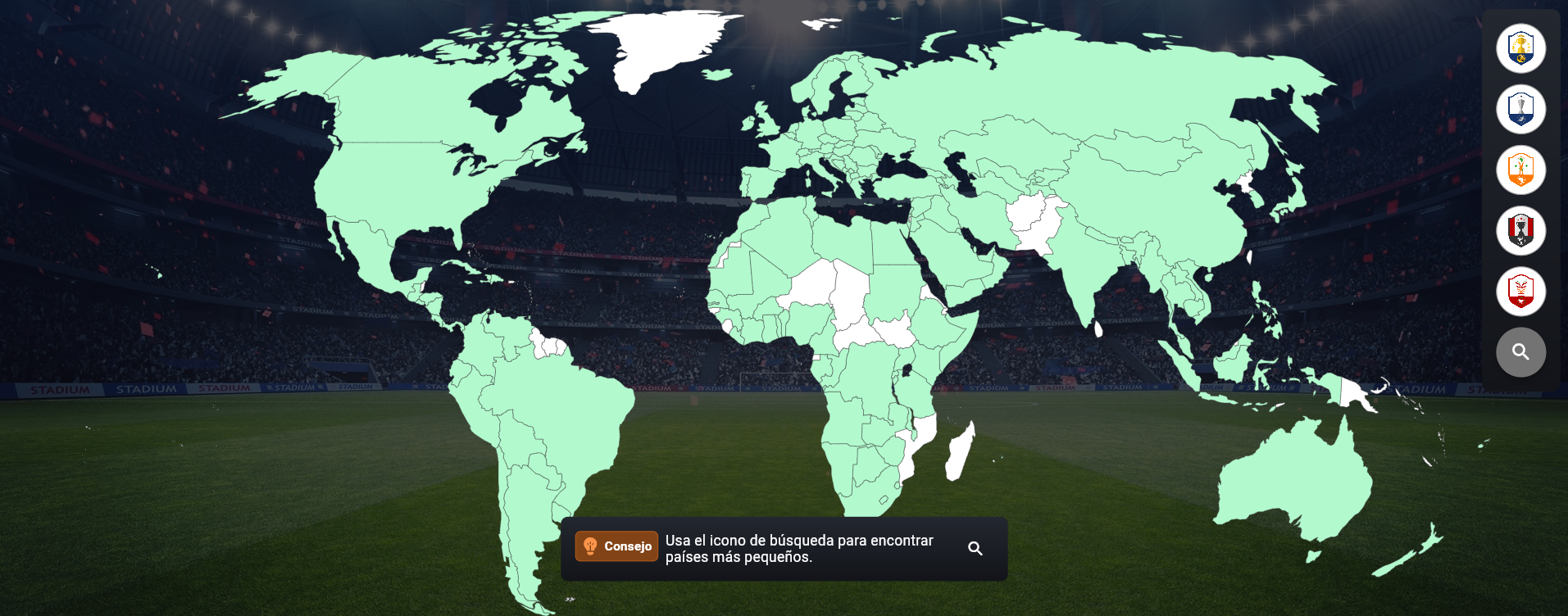 Con este mapa puedes ver qué países están incluidos en Soccerverse. Puedes hacer zoom para encontrar países más pequeños, pero algunos países son demasiado pequeños para mostrarse correctamente. Estos países son: Singapur, Hong Kong, Mauricio, Andorra, San Marino y Gibraltar. Simplemente usa el icono de búsqueda para encontrar estos países.