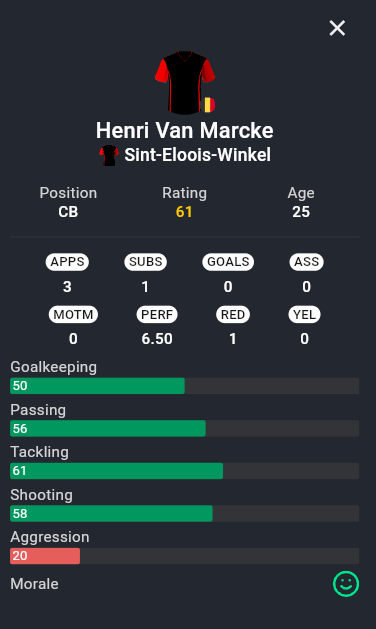 Si vous double-cliquez sur un joueur dans l'aperçu de votre équipe, une fenêtre contextuelle s'affichera avec des informations et des statistiques sur ce joueur.