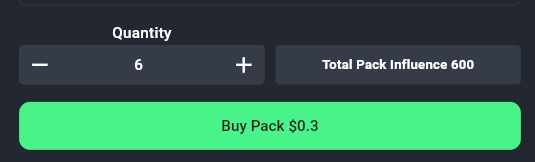 Si vous êtes satisfait de votre choix, cliquez sur le bouton vert "Acheter le Pack" ; votre influence achetée sera disponible dans votre portefeuille après que la transaction ait été confirmée sur la blockchain et le montant payé sera déduit de votre portefeuille.