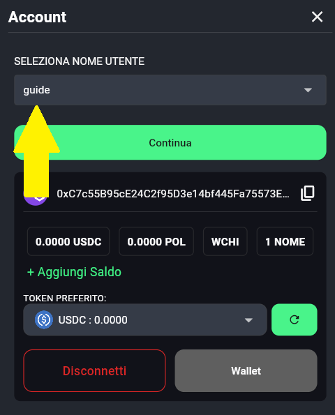 Il tuo nome utente è arrivato nel tuo portafoglio