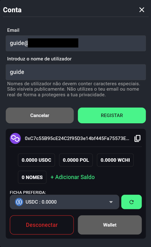 Por favor note que cada nome de utilizador é único. Se o seu nome de utilizador desejado for um nome comum (como João), existe uma alta probabilidade desse nome já estar ocupado. Nesses casos um "x" é adicionado ao seu nome de utilizador desejado, resultando no nome de utilizador "Joaox" sendo enviado para a sua conta.
