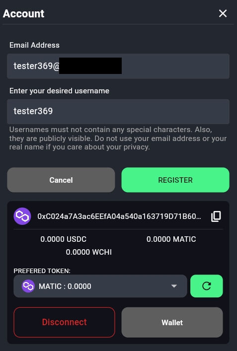 次のポップアップで、希望するユーザー名を入力し、登録をクリックしてください。 すべてのユーザー名は一意であることに注意してください。希望するユーザー名が一般的な名前(Johnなど)の場合、その名前がすでに使用されている可能性が高いです。その場合、希望するユーザー名に「x」が追加され、「Johnx」というユーザー名があなたのアカウントに送信されます。 ユーザー名は公開されるため、プライバシーを気にする場合は、メールアドレスや本名をユーザー名として使用しないことをお勧めします。