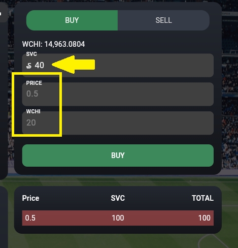 WCHI alanı, bu miktarda SVC satın almanın size kaç WCHI'ye mal olacağını otomatik olarak hesaplayacaktır.